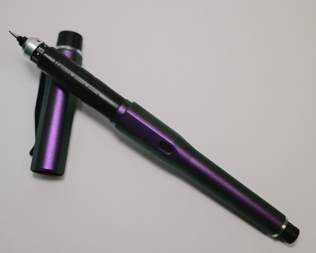 因為買不到太沮喪,我2023年下半年都選擇性地忽視他們的新聞稿,新色還是我去信請明進文房具幫忙找才知道的。正好我手上沒什麼紫色,而且我挺喜歡偏光的,便在年底託明進買了一支。
