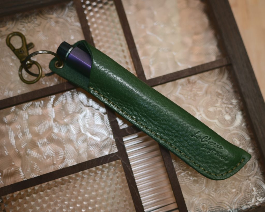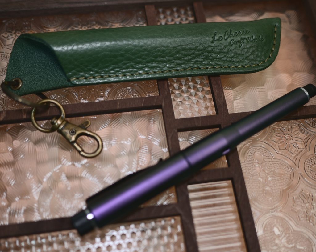看好久找到了這個:日本LeCherie Craft Works製作的真皮單支筆套( 日本樂天市場商品頁面)