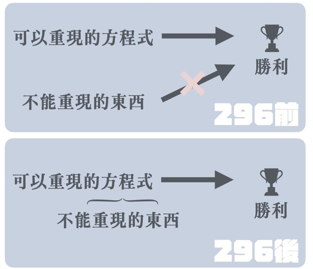 - 勝利需要的是可以再現的方程式,不需要無法重現的東西